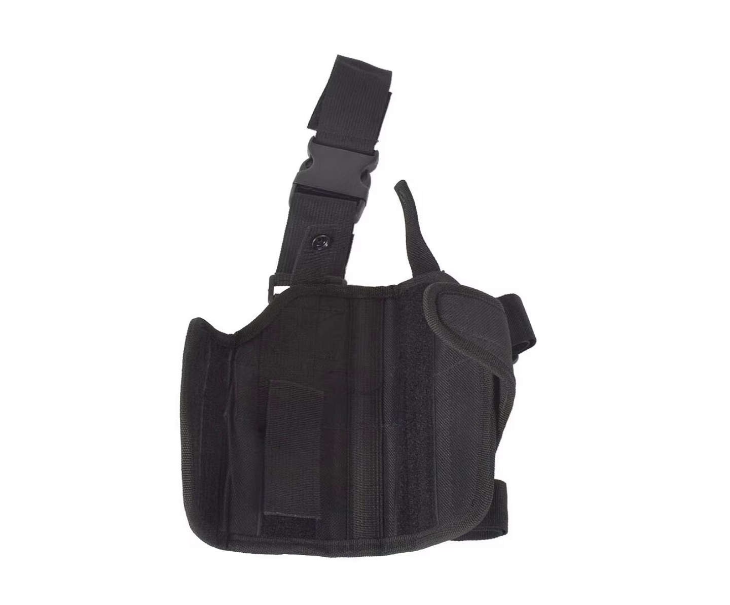 Tocul de coapsă, reglabil, coapsa dreaptă, negru, este o soluție fiabilă și funcțională pentru airsoft, vânătoare, tir tactic și sportiv. Construcția purtată pe coapsă asigură acces rapid și intuitiv la pistol, fără a restricționa mișcările în timpul scenariilor active, antrenamentelor sau sesiunilor de tragere reale.
