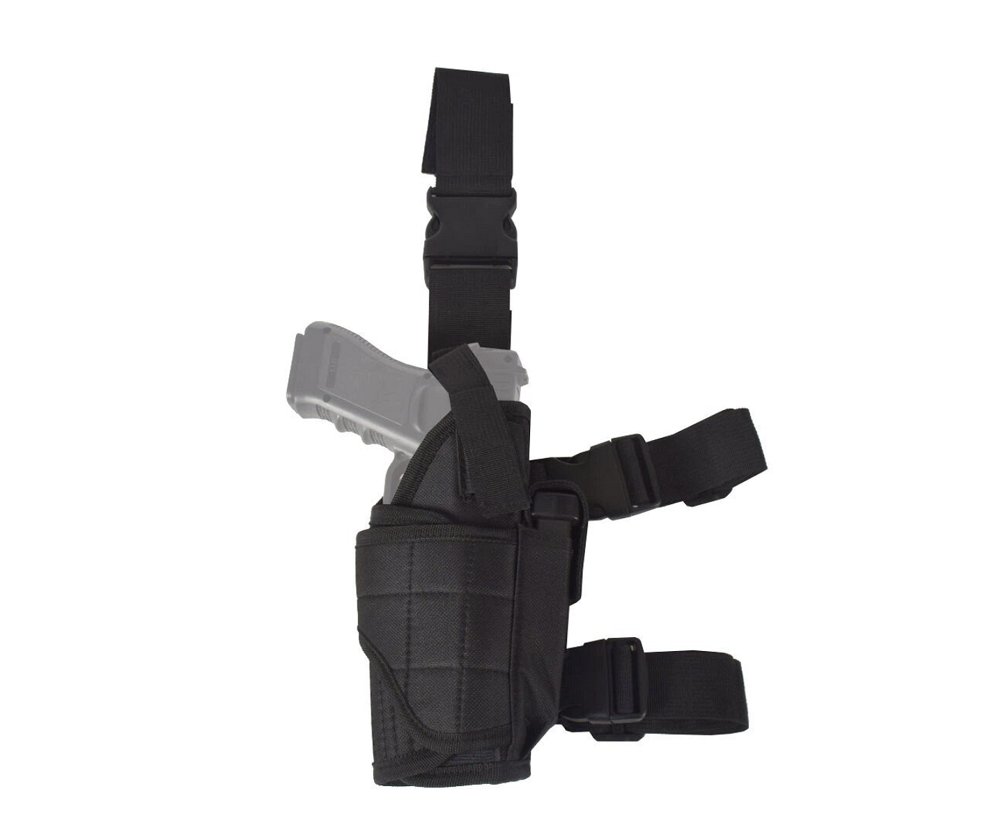 Curelele reglabile permit o potrivire precisă la picior și talie, asigurând stabilitate chiar și în timpul alergării, genuflexiunilor sau purtării prelungite. Este potrivit pentru replici airsoft și pistoale reale utilizate la vânătoare și tir, precum și pentru echipamente tactice.