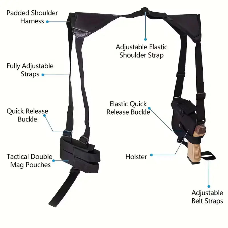 Tocul pentru pistol, sub braț pentru purtare ascunsă, negru, este o soluție discretă și practică pentru purtarea confortabilă a unui pistol sub haine. Designul pentru purtarea sub braț permite o poziționare ascunsă, asigurând un acces rapid și comod la nevoie.