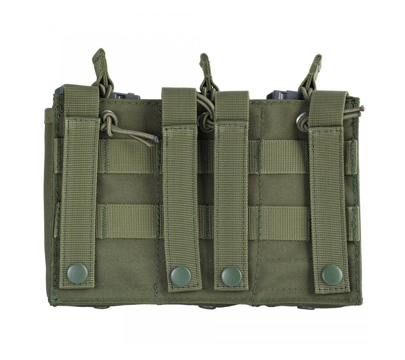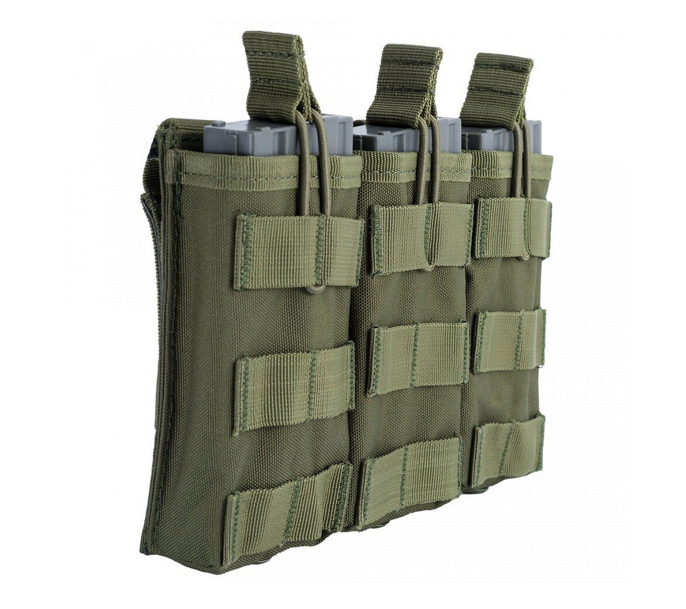 Tocul dispune de trei compartimente separate care fixează încărcătoarele în mod fiabil și le împiedică să cadă. Datorită sistemului MOLLE, acesta poate fi montat cu ușurință pe veste tactice, curele, rucsacuri sau plate carrier-uri, ceea ce îl face potrivit pentru diferite configurații de echipament pentru airsoft, vânătoare și tir.